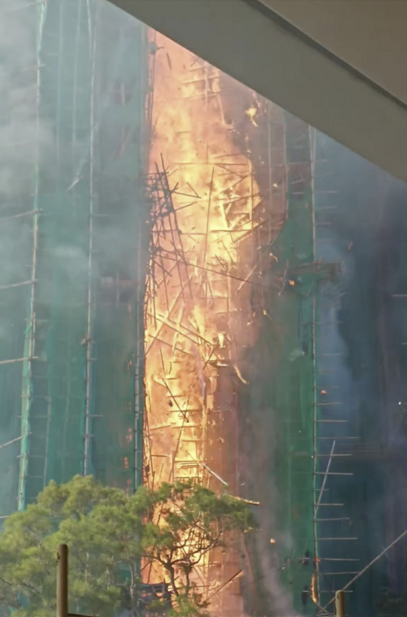 公开视频画面显示,香港大埔宏福苑宏昌阁外墙棚架燃起大火,火势达数层楼高,浓烟席卷半空,部分建筑材料掉落,楼内部分住宅单位内更有火焰喷出窗外。现场不时传出爆炸声,附近部分建筑已受波及,情况危急。