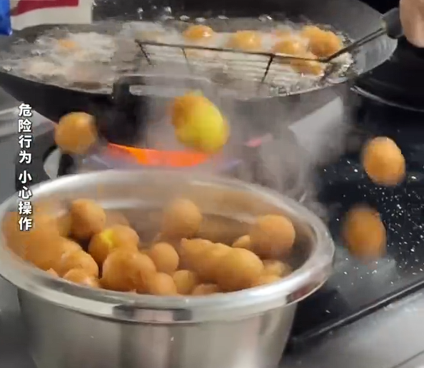 3.汤圆下锅时的油温不能太高,低温慢炸更安全。